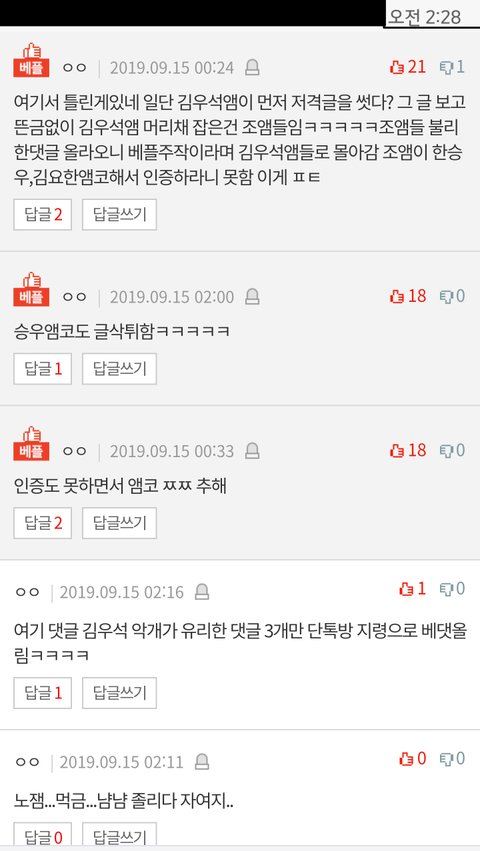 갑자기 이글에 달린 우석앰이 쓴 댓글 몇개가 글삭되지않겠어?ㅋ 그러더니 김우석에게 유리한 댓 3개만 남겨둔 상태에서 3개가 베댓이 됨ㅋㅋㅋㅋㅋㅋ