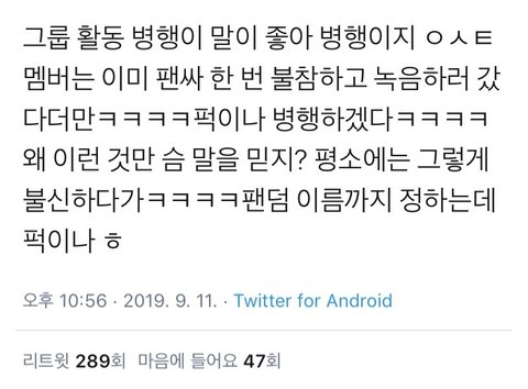 팬들이 싫어하는걸 알면서도 ^^
