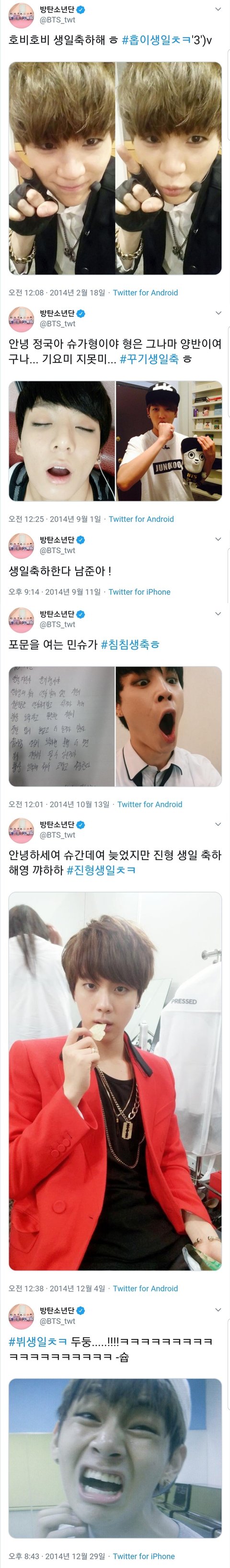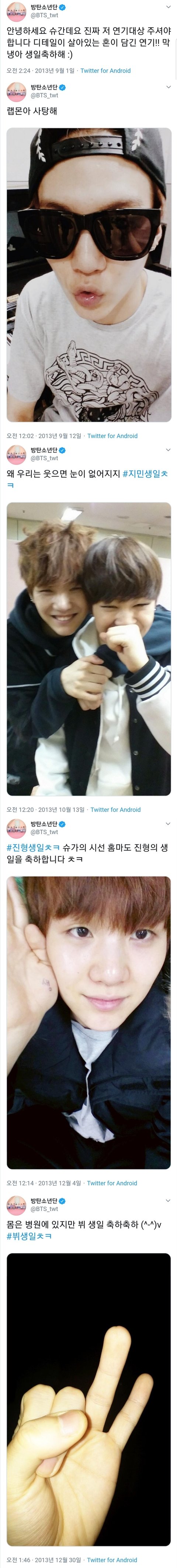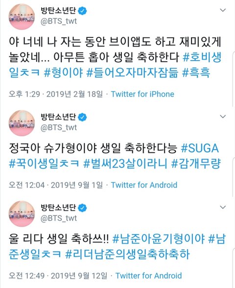남준이 생일엔 윤기 맞는지 확실하지 않음 다른 멘션은 누구인지 확인 가능하지만 저 트윗만 언급이 없어서 윤기로 추정