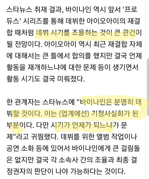바이나인 데뷔 기정 사실화
