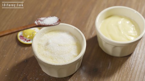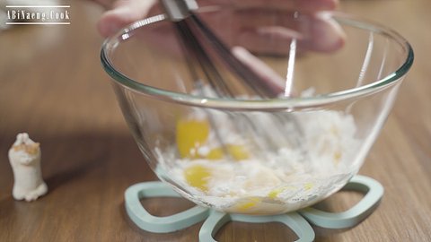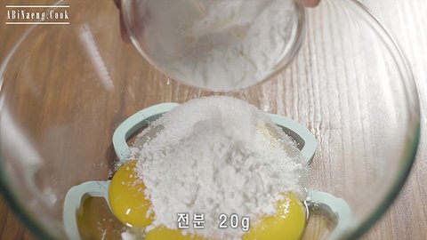 1. 노른자, 설탕, 전분을 넣고 섞어주세요.