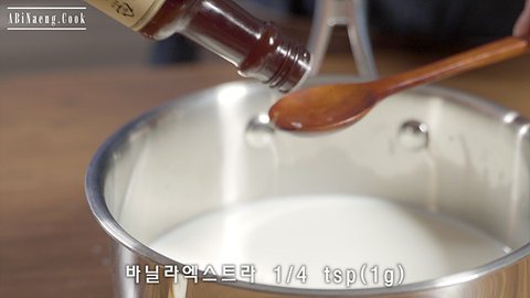 2. 우유에 바닐라엑스트라를 넣고 60~70도 까지 데웁니다.