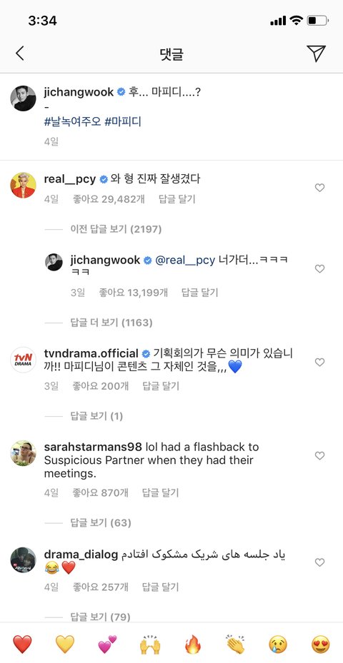 지창욱인스타보는데 댓글에 찬열이있어서..쩝