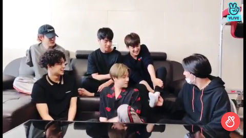 아무튼 곧 브이앱도 다시 할 거래!!ㅎㅎ 둘씩 짝지어서 윤형×진환 / 바비×준회 / 찬우×동혁 순으로 3그룹이 의리로 총 5시간을 채우는걸로 했어!! (예를들어 윤형진환이 1시간 했으면 바비준회 찬우동혁이 4시간 알아서 채우는 형식)