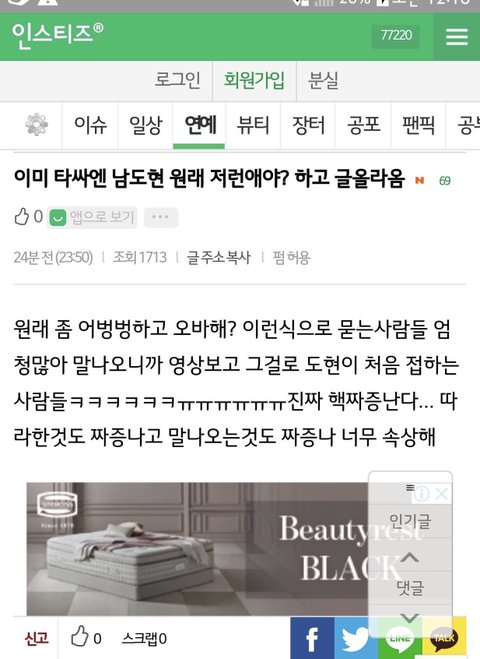 근데 이진혁 팬들 친한 사이라서 그런 거다 남도현 팬들 오바싼다 이런 댓 ㅈㄴ 많음;;; (픽도 같이 조롱하듯이 따라했는데 얜 팬 없어서 쉴드도 없음ㅋㅋㅋ) 이진혁 팬들 연령대도 높으면서 왤케 초딩같이 굴어? 지금까지 팬들 중에 이진혁 비판글 2개 봄ㅋㅋㅋㅋㅋㅋㅋㅋ