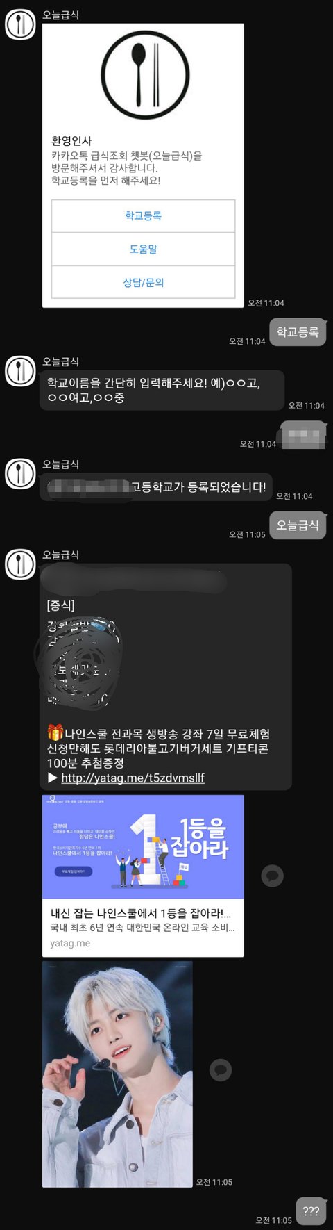 며칠전에 급식알려주는 플러스친구 추가했는데 뜬금없이 재민이 사진보냄ㅋㅋㅋㅋㅋㅋㅋ