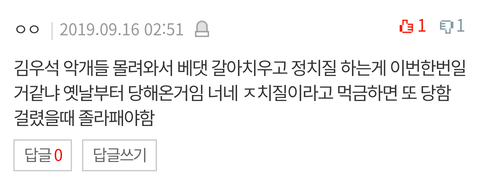 우석이 악개팬들이 몰려와서 댓글조작하고