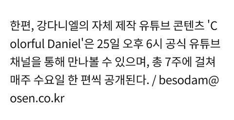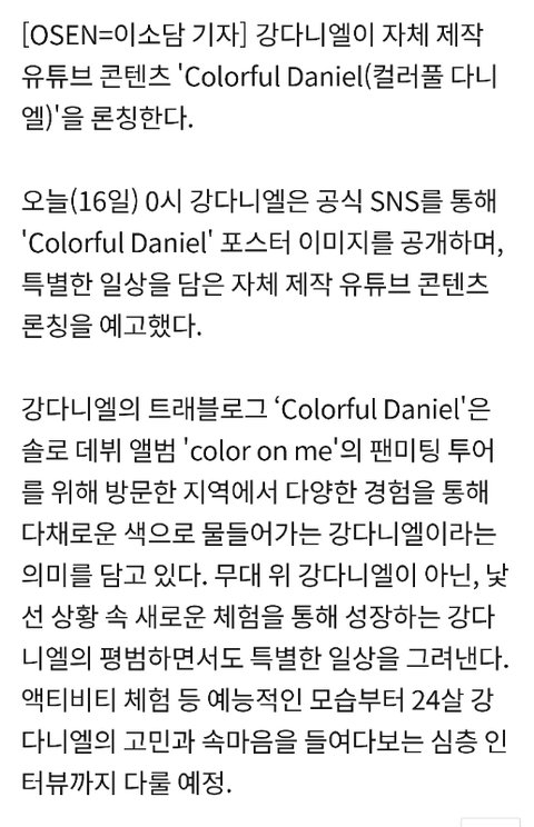 강다니엘, 자체 제작 콘텐츠 '컬러풀 다니엘' 론칭..25일 첫 방송 [공식]