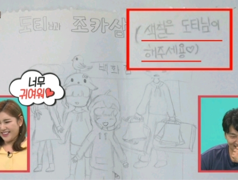 ㅋㅋㅋㅋ 하나는 색칠은 도티님이 해주세용 ♡ 라고 쓴 거 ㅋㅋㅋㅋ 귀엽다 귀여워 ㅠㅜㅋㅋ