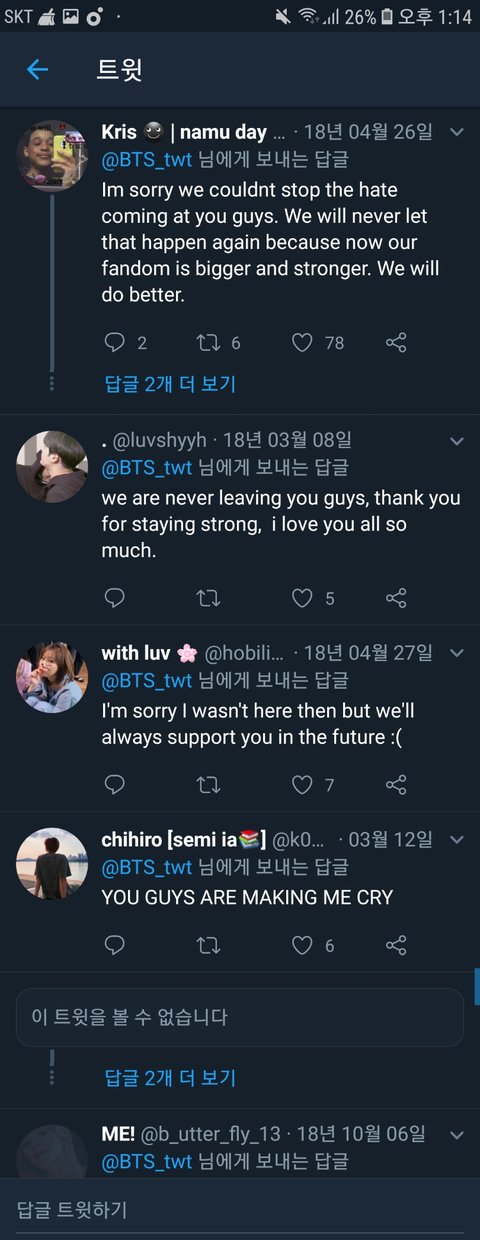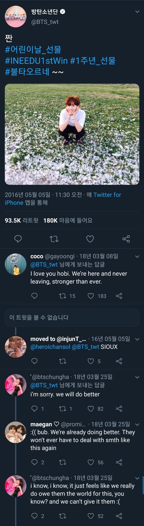 1. 사랑해 호석아 우린 여기 있을 거고 절대 떠나지 않아 전보다 더 강해질 거야