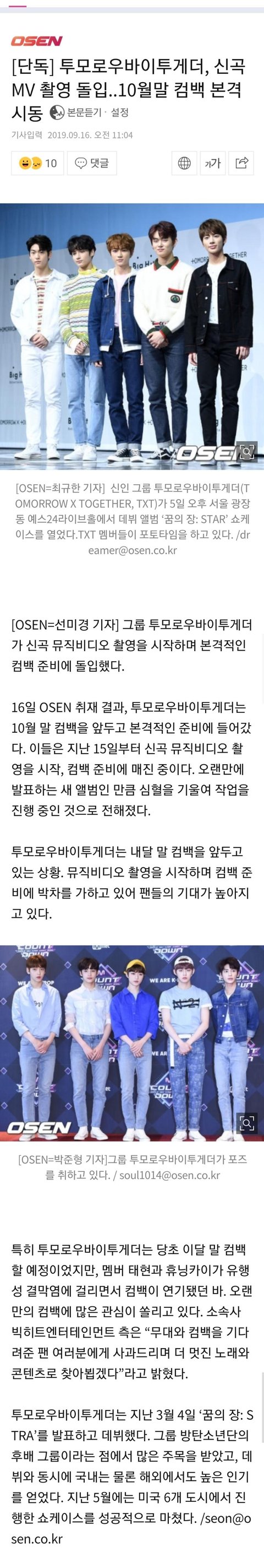 투바투, MV 촬영 돌입..10월말 컴백