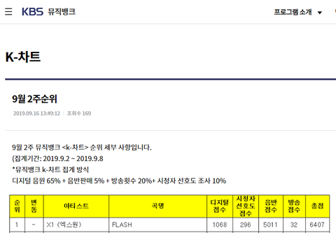 뮤직뱅크도 2주 연속 1위한 엑스원