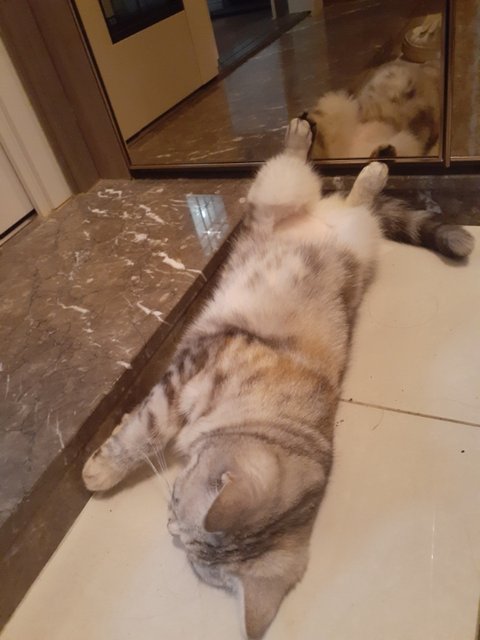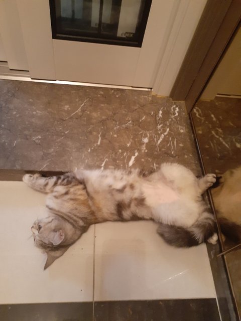 울고양이 현관바닥에서 이러고있음