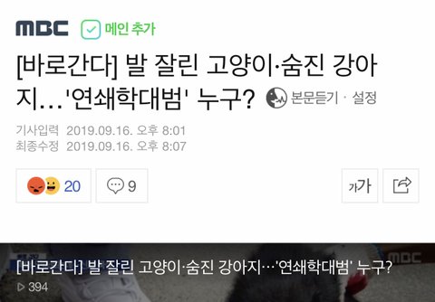 포항 모 대학 캠퍼스에서 누군가 덫을 놔서 고양이들 다리를 절단시키고, 학교 정문 앞 도로에는 새끼강아지 사체 6구와 큰 강아지의 잘린 귀를 전시하는 등의 미친행동을 하고 있습니다ㅠㅠㅠ