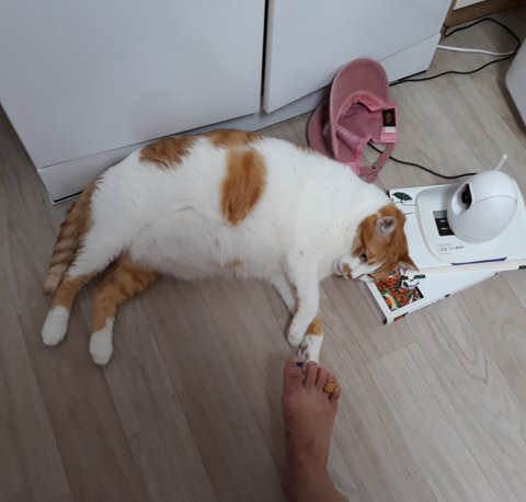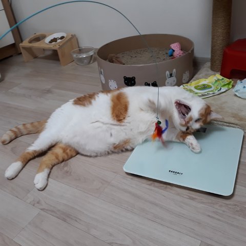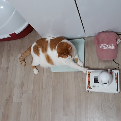 좋아하는 철느낌나는 체중계에 하고 있음.