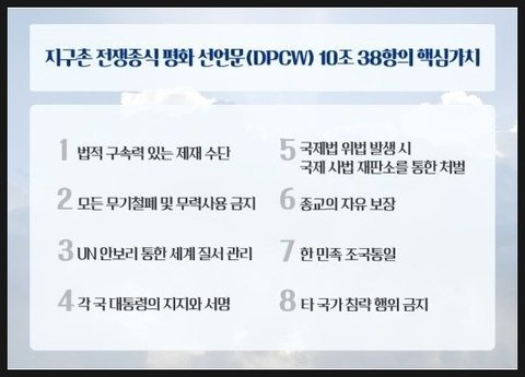 그리고 지구촌 전쟁종식 DPCW 10조 38항의 가치를