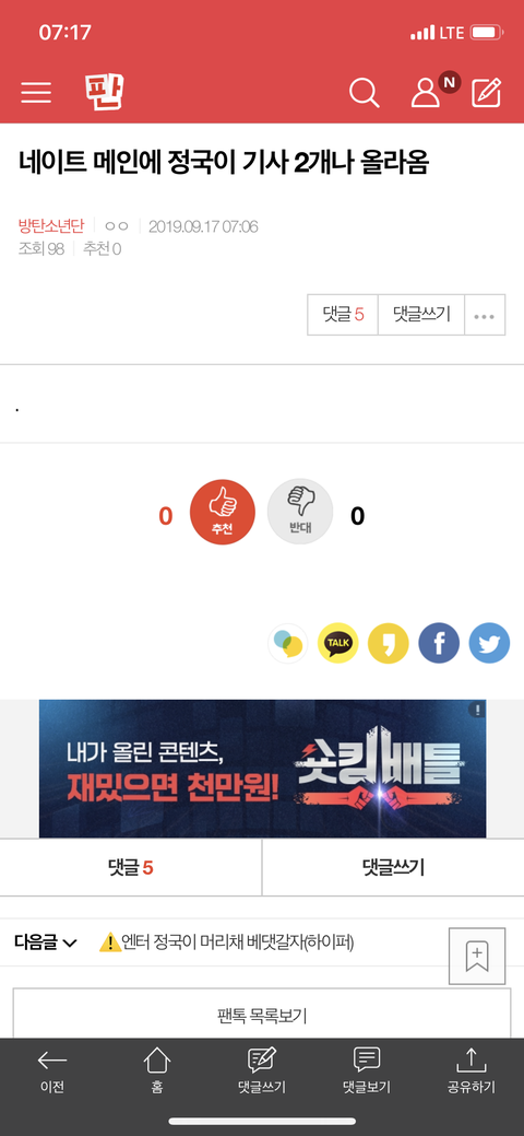 ⚠️밑 네이트 메인에 여기서 봐 ㅇㅁㄱ