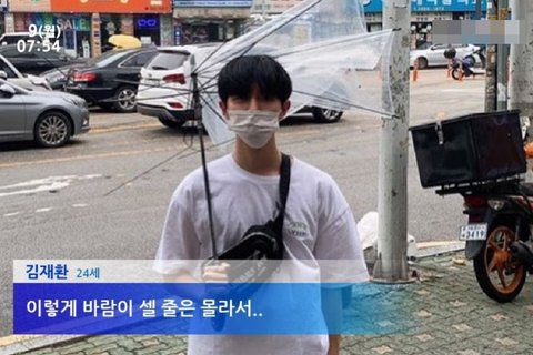 뜯어진 우산 쓴 채로 친구한테 사진 찍어달라 부탁함