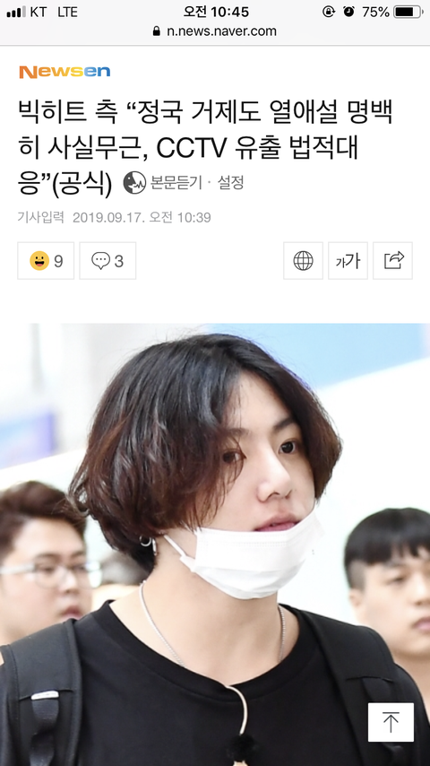 기사에는 씨씨티비 정국이가 맞다는 말도 아니라는 말도 없음 확.인.후. 법정대응한다잖아 심지어 저 씨씨티비속 백허그하고있는 남친 사진도 다떴음 발작 그만하소