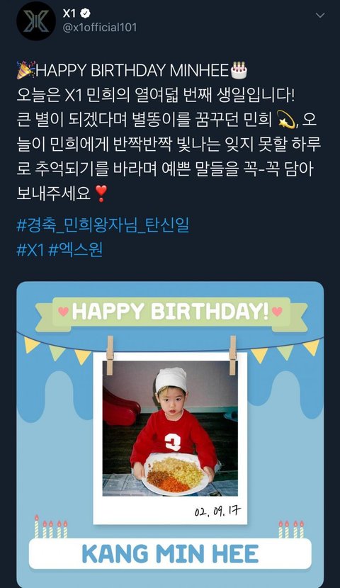 오늘 엑스원 강민희의 생일이야