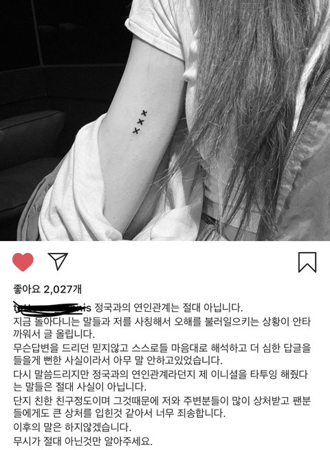 정국 열애설난 여성분이 직접 글 올리심