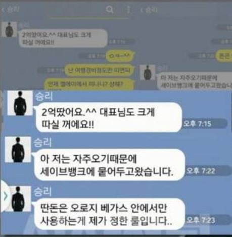 승리 도박 증거 카톡 공개