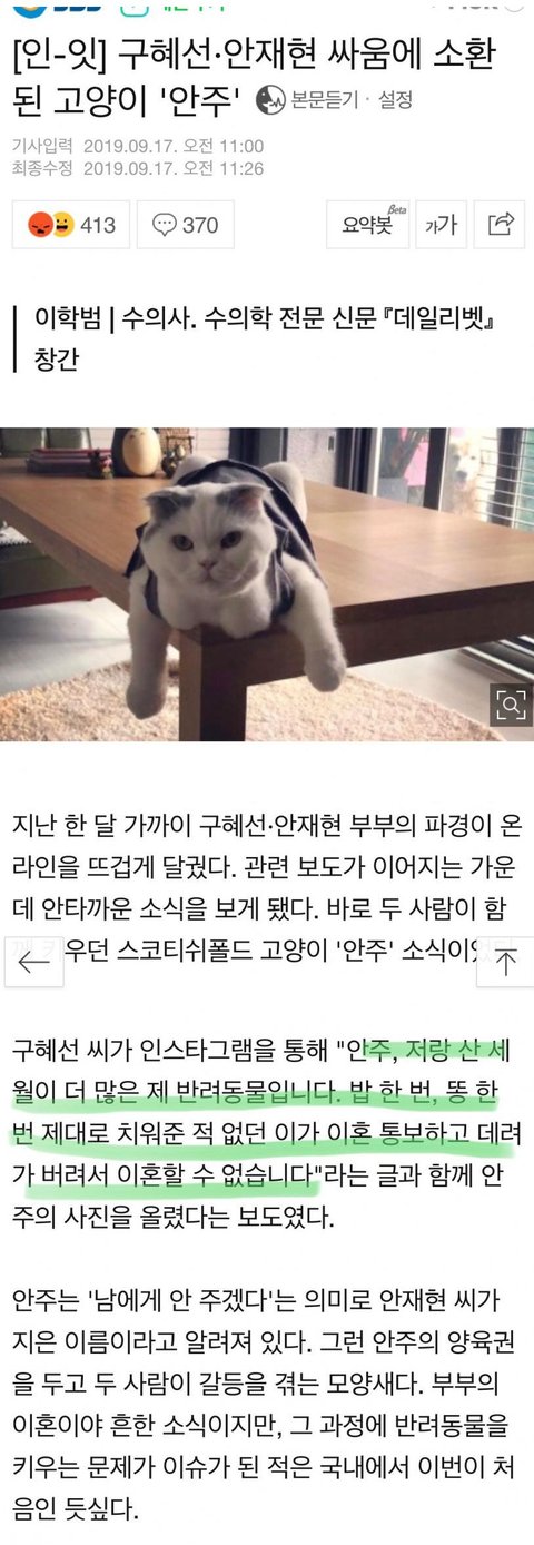안주 이름이 안재현 주인이라 안주라며 안주 안재현이 결혼 전부터 키워오던 고양이인데 왜 고양이 한 마리 마저 안재현한테 안주는 거야