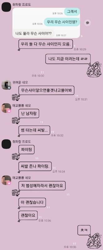 ㅂㅇㅊㅇ중 ㅇㅅㅇ 보고 있? 보면 멘탈 깨지는 거 다 감안하고 대화하고 싶단 것만 알아 줘