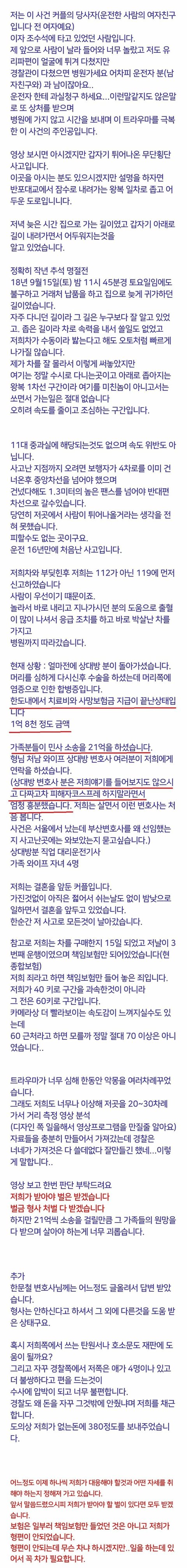 21억 민사 소송이 걸린 무단횡단 사고