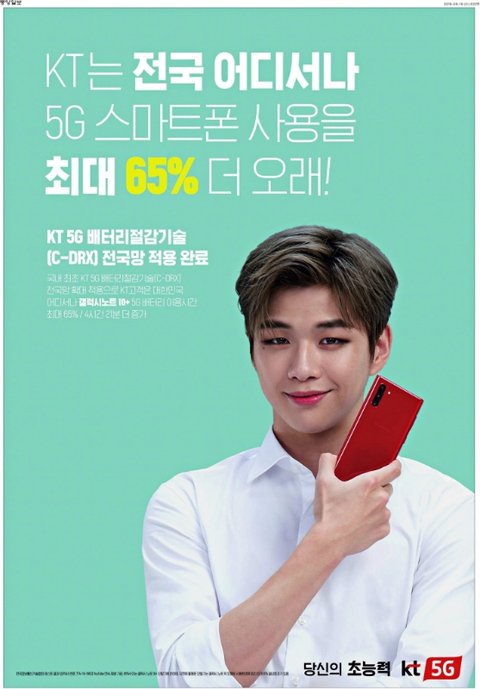 오늘자 중앙일보에 실린 강다니엘 KT광고