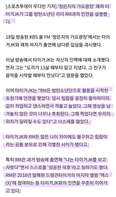 호랑이 정국이님 준이 언급