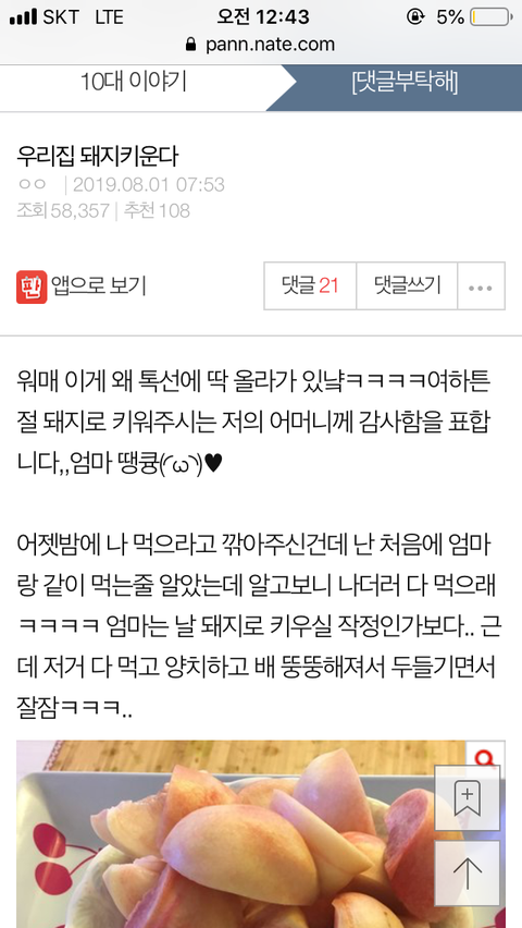 +ㅋㅋ이게 왜 여기있냨ㅋㅋㅋ 사실 우리 엄마 이런적 처음이 아니야ㅋㅋ 내가 올렸던 글인데 기억하는 애들이 있을지 모르겠는데 이거도 내가 올린 글임,,♥우리 엄마는 나 많이 못 먹여서 안달나신분임ㅋㅋㅋ 엄마 사랑행