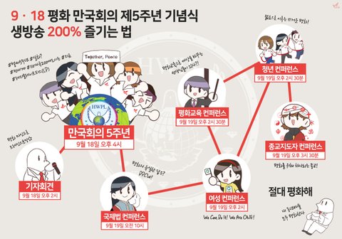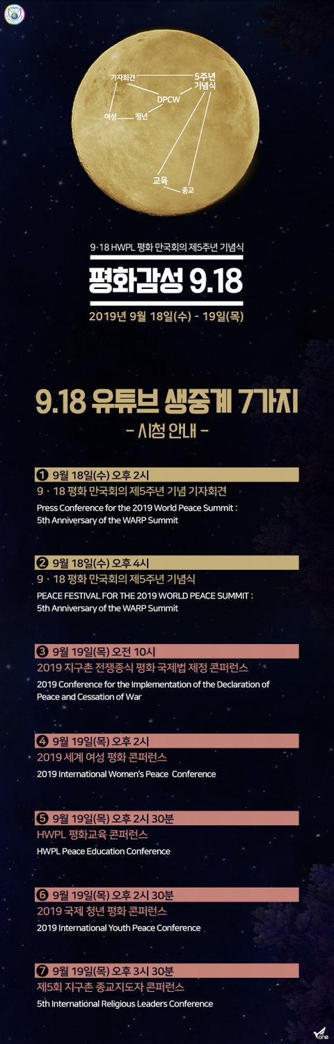 오늘 2019년 9월 18일에 'HWPL 평화 만국회의 5주년 기념식'이 대한민국 서울에서 개최된다고 하는데요.