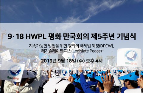 오늘 2019년 9월 18일에 'HWPL 평화 만국회의 5주년 기념식'이