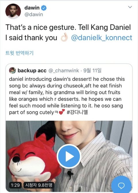 Dawin의 트윗에 해외팬이 얘기했더니