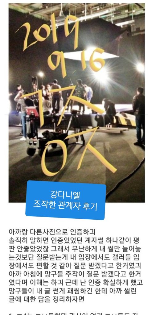 넷째해피투게더 관계자라고하면서 강다니엘 후기를 씀