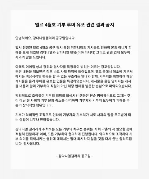 본인이 기부처에서 일하는데 강다니엘갤서