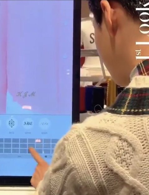 분홍색셔츠랑 이니셜 고르는 뒷모습이 넘 귀여움