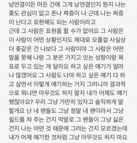 해쉬 정말 지쳐보이고 정말 진짜 힘들어보였다 해쉬팬도 방탄팬들도 이제 이 일 끝내는게 좋을 듯 하지만 그렇게 디엠으로 욕 하고 그런건 (남연갤 팬코 애들 말고) 잊지말고 미안하다는 마음 가지고 있어야 한다 나는 생각해