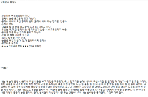 ㅋㅋㅋㅋㅋㅋㅋ풍들 혹시 위에 언급한 제목의 픽 있으면 그거 ㅋㅋ 읽어봨ㅋㅋ아늬 수가 너무 귀여워 di짐..ㅋㅋㅋ 요즘 현생이 너무 치열해서 ㅋㅋㅋ 킬링타임용으로 단편하나 읽으려다가 발견한 픽인데ㅋㅋㅋㅋㅋ보는 내내 웃겨 주금 하... 딱 제목부터 느낌이 훅 들어오지 않아??ㅋㅋ간단히 말하자면 뱩이 귀엽고 어리바리한 애가 좋다는 걸 수가 들어서 ㅋㅋㅋ(수 뱩이 짝사랑하고 있었는데 이건 쌍방 짝사랑 이었음 ㅋㅋㅋ 결론은 서로가 서로를 짝사랑 ㅋㅋㅋ)근데 수가 워낙 무뚝뚝하잖니 ㅋㅋ 그래서 인터넷에 찾다가 ㅋㅋㅋ ah방su의 튝징을 찾게 됨ㅋㅋㅋ 그리고 그걸 뱪한테 시전하려고 하는데 ㅋㅋ 그 과정이 내가 창피해 죽음 ㅋㅋㅋ 그렇지만 귀여워 수가 ㅋㅋ 그리고 박됴비랑 뱩이 절친인데 본격 쌍방 삽질 속에서 박됴비만 죽어나는데 ㅋㅋㅋ 하..혹시 이거 가지고 있는 풍들은 읽어봐 ㅋㅋㅋ즨짜 15분도 안걸려서 다 읽었는데 ㅋㅋㅋ진짜 웃겨 디jimㅋㅋㅋ