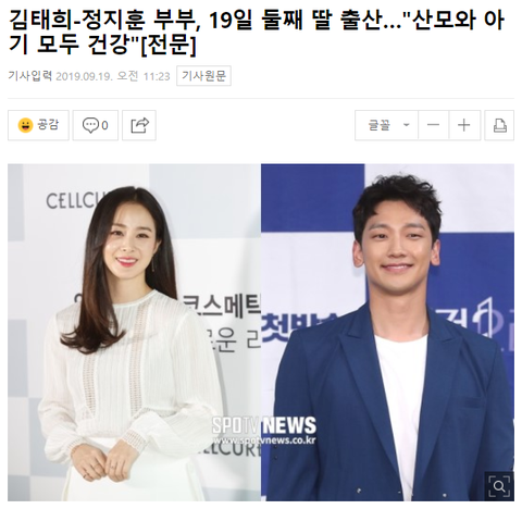 둘째 딸을 출산했다는 비 태희 부부