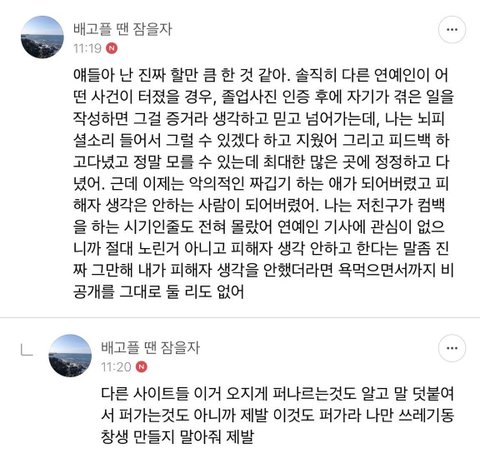 늊팬들은 저둘 근황뜨는걸 왜 욕하는거? 다니엘은 원래도 러닝크루 친목하러다니다가 계약해지되고 유투브에 곡 올리면서 활동하려고하잖아..