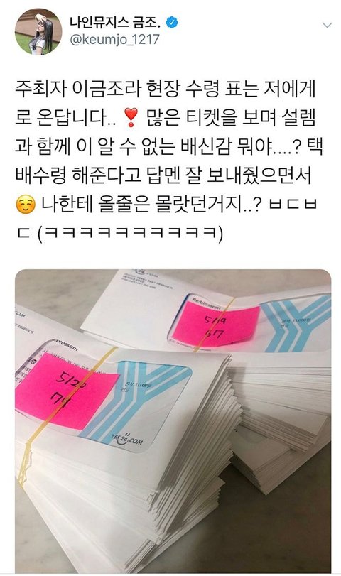 팬들이 현장 수령할 표들 직접 이름순으로 분류하고