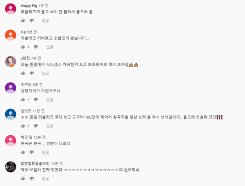 브아걸 식스센스 유튜브 댓글 현황 ㅋㅋㅋ