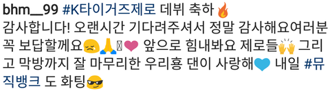 대현이는 솔로 막방이었고 현민이는 '케이타이거즈제로' 데뷔 첫방이었는데ㅠㅠ