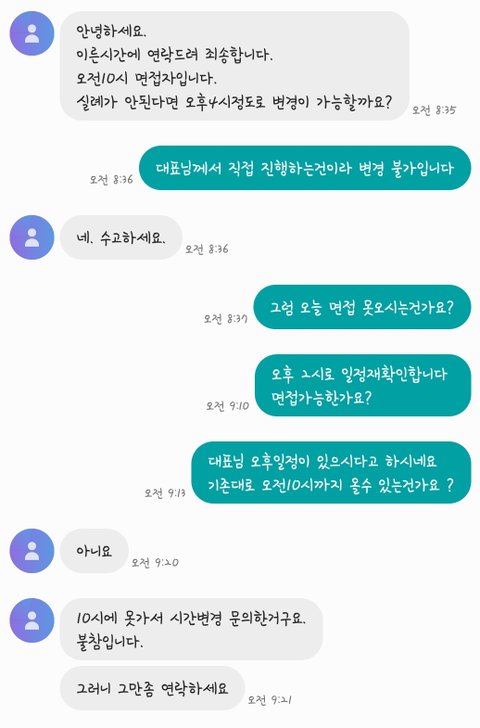 10시면접인데 당일아침에 문자가 옵니다 그리고 수고하세요....