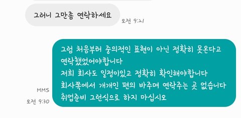 마지막에 제가 어이없고 열받아서 보낸 마지막 메세지에 오타가 있는데(보내고 나서 발견했네요 ㅎㅎ;;)