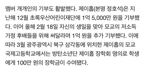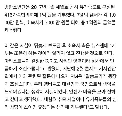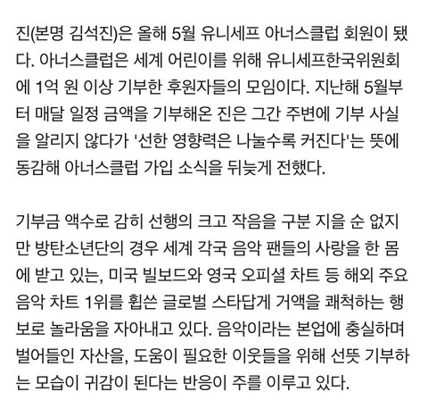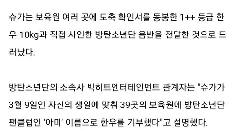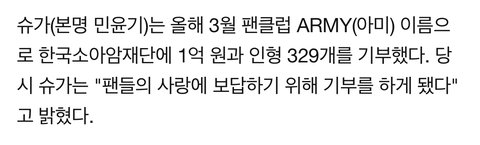 다 대단하지만 슈가 팬클럽 이름으로 1억 기부는 진짜 ㅎㄷㄷ...
