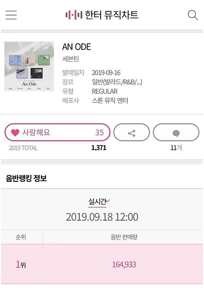 음원 : 발매 직후 멜론26위, 자체 최악 성적으로 기록함. 하트수 27000, 컴백 4일째에 86위 까지 떨어졋고 이대로가면 곧 top100 밖으로 나갈수도있겟네