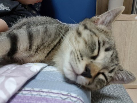 잠 안자고 떠들었더니 그만하고 자라고.. 하며 팔 뻗어서 집사를 건드리는 고영희씨..(3세, ♂X,♀X)
